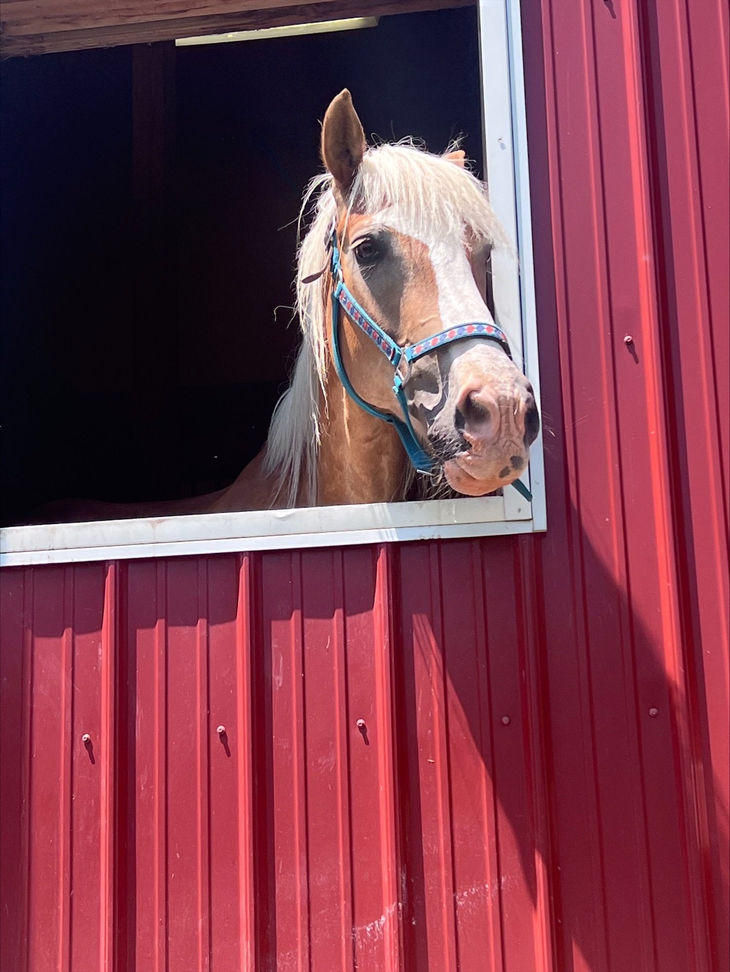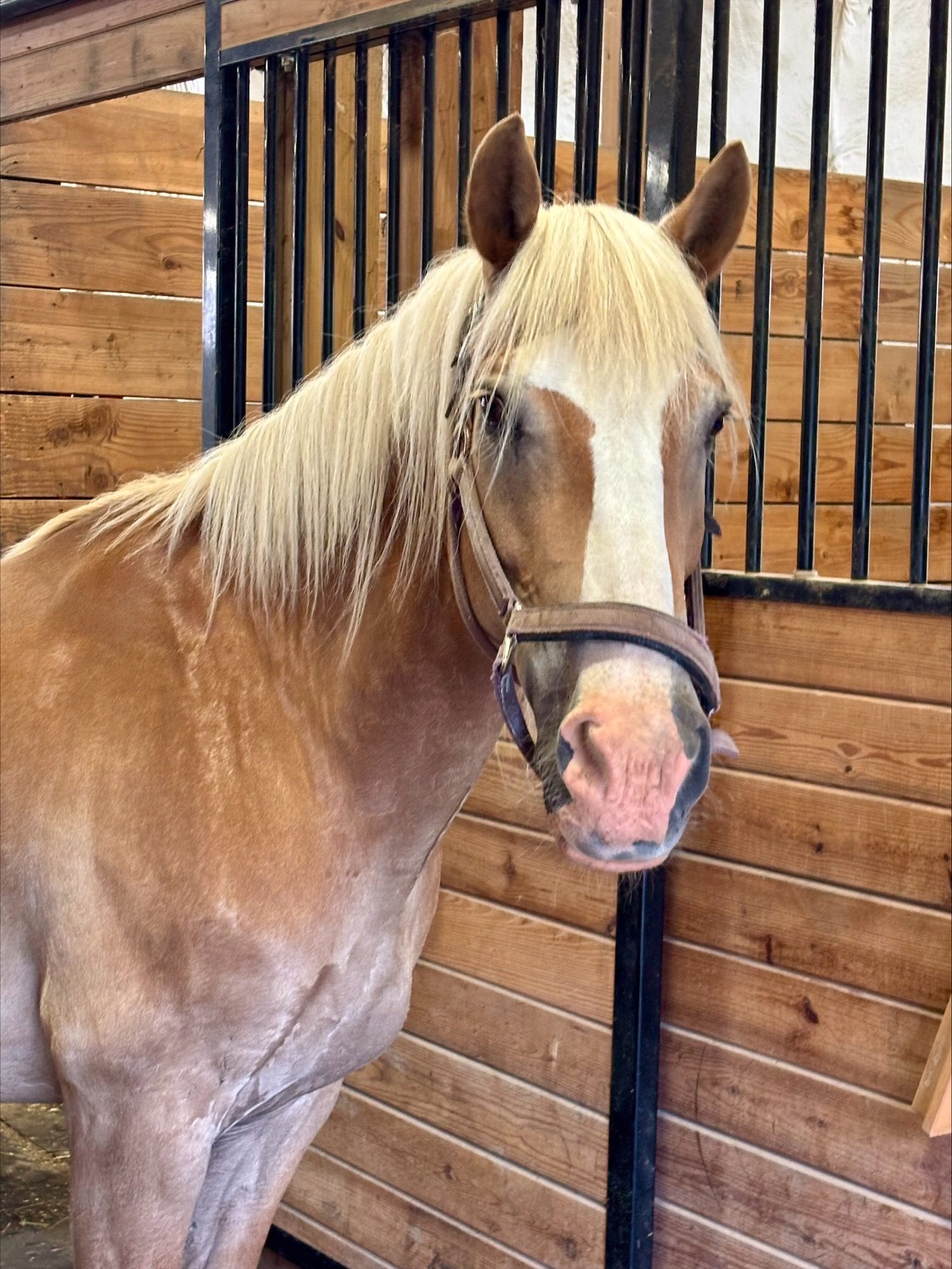 With her calm, steady demeanor and gentle spirit, Chipper has settled beautifully into her new surroundings. She thrives on quiet moments during grooming sessions and is already proving to be a source of comfort for riders of all abilities. Whether you’re walking beside her or perched high on her back, her presence brings a sense of peace.